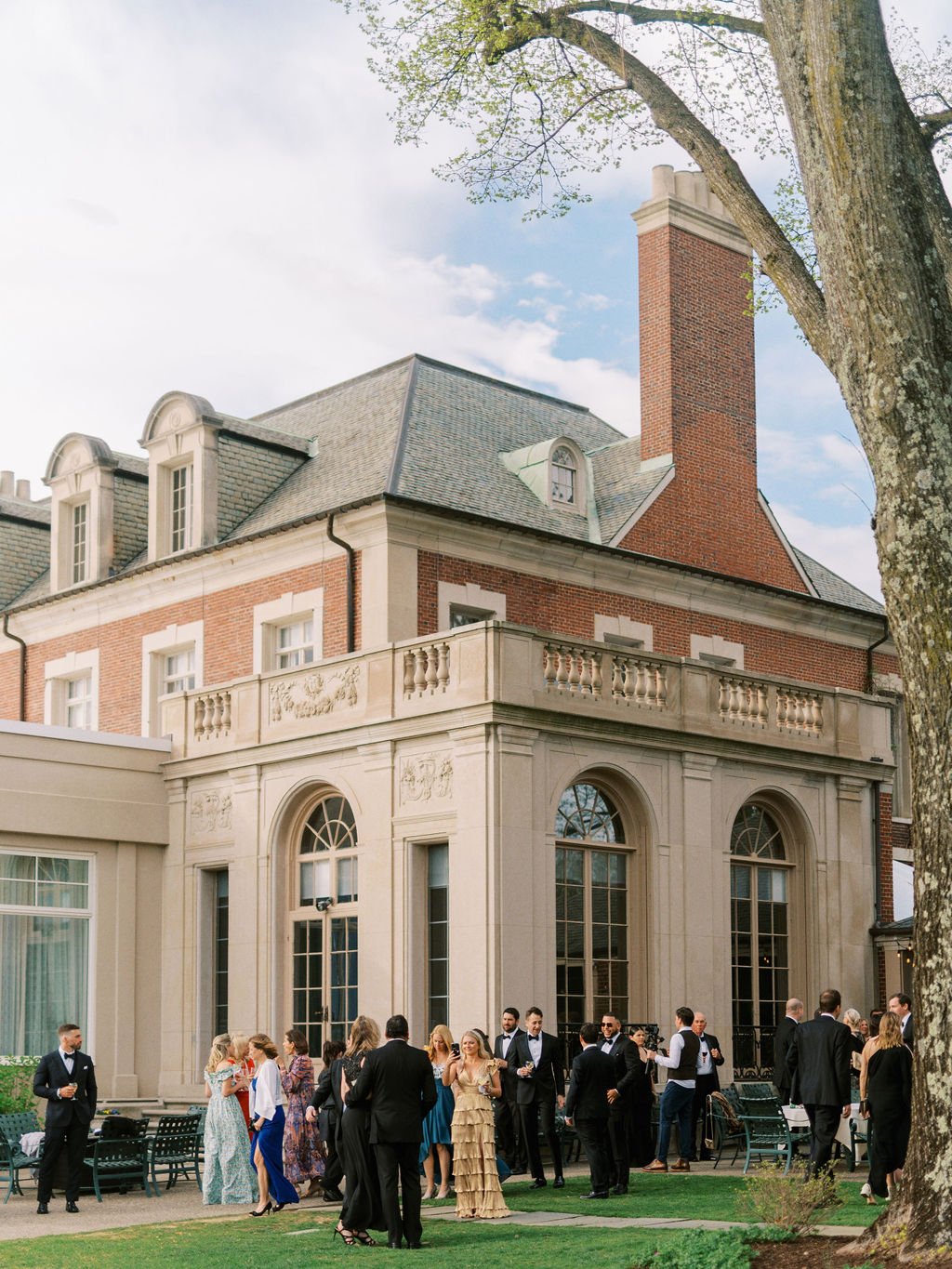 Bridal Gown: Anne Barge • Bridesmaids Dresses: Custom by V. Chapman Studio • Hair: Amanda D’Andrea • Makeup: Beke Beau • Venue & Catering: Overbrook Golf Club • Photographer: Alex Schon Photography • Florist: Flowers by Nora • Entertainment: New York City Swing • Lighting: Synergetic • Invitations: Chick Invitations • Video: Abominable Productions